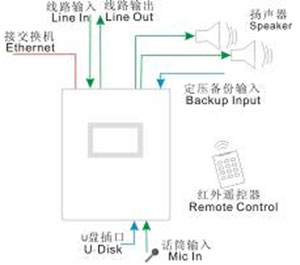 6、 可選配定壓備份廣播(接入100V定壓廣播線路作為備用,符合教委重要考試必須有備用系統(tǒng),雙路同時(shí)工作的要求);