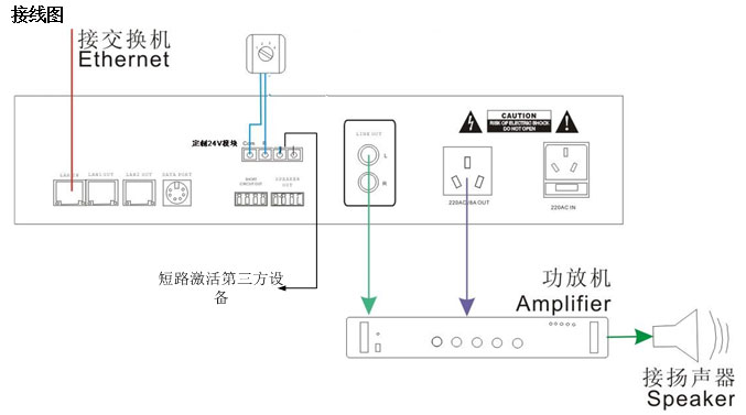 3.音頻線路輸出,接外部功放擴(kuò)音;