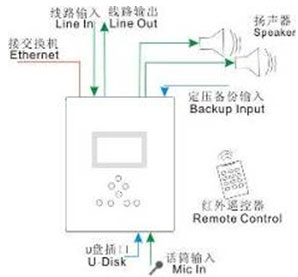 7.可選配定壓備份廣播(接入100V定壓廣播線路作為備用,符合教委重要考試必須有備用系統(tǒng),雙路同時工作的要求)
