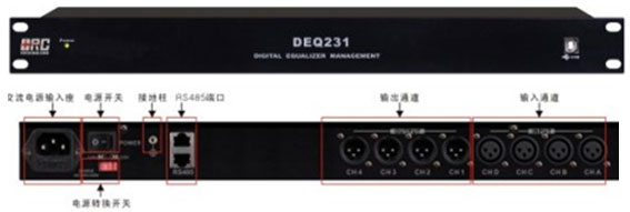 每個輸出均有31段獨立的參量均衡,1個高通濾波器和1個低通濾波器,調(diào)節(jié)增益范圍-30+15dB;