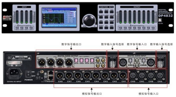 8XLR公卡儂座,帶數(shù)字輸入輸出,4個(gè)RCA數(shù)字輸出口和4個(gè)光纖輸出口,每個(gè)數(shù)字口傳輸兩路音頻信號(hào)